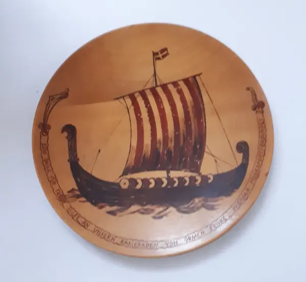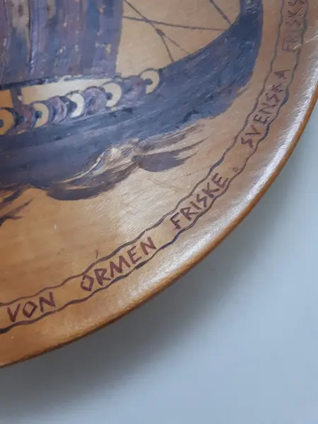 - Fatet fick givaren 2005 av dottern till den myndighetsperson som från tysk sida utredde haveriet och tog emot de släktingar och den representant för Frisksportförbundet som reste till olycksplatsen. Som tack för sitt engagemang fick han detta fat och en vas (SM 30182).