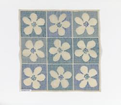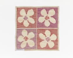 Kudden är broderad med mönster designat av Raine Navin, 1968, för Södra Kalmar Läns Hemslöjdsförening.