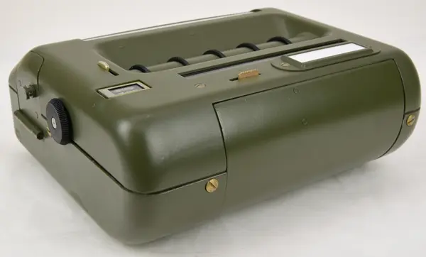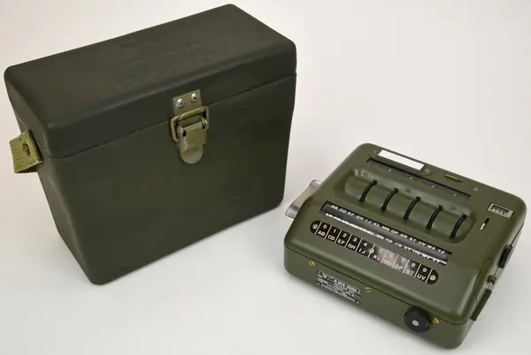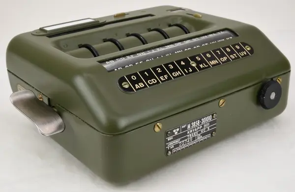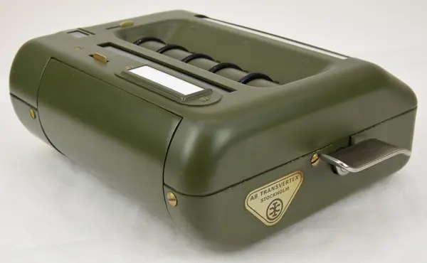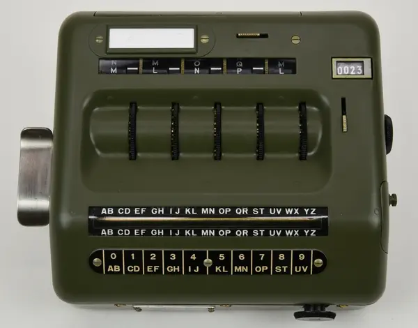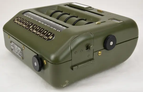 Mekanisk krypteringsapparat för manuell kryptering och dekryptering av skrivna meddelanden.