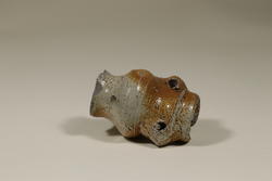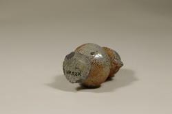 Så var det den andre typen av små krukker. Den har to øreformede hanker, og krukkemakeren har ikke gjort seg like stor flid med å lage denne typen (Stalsberg 2005:42). De er dreid av hardbrent, god leire, og glasuren er gjerne brunlig eller grågrønn. Krukken som Vardø museum har i samlingen sin passer godt til den siste beskrivelsen. Den har de karakteristiske «håndtakene», og den har slitasje, noe som kan tyde på at den er hurtigprodusert. Glasuren er grågrønn. Standardstørrelsen på spinnekrukkene er mellom fem og syv centimeter, og de har en liten fot og en vid åpning i forhold til størrelsen (Stalsberg 2005:42). Den avbildede krukka er 6,4 centimeter høy, og både foten og åpningen er stor i forhold til resten av krukka. Selv om en kanskje ikke skulle tro det, har krukka blitt utformet slik hovedsakelig av praktiske årsaker. Allikevel har forskerne hatt god grunn til å tro at krukkene ble brukt til relikvier og salver.