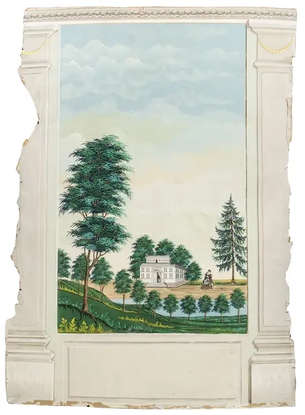 Målningarna hade skurits ned av tidigare ägare i samband med ett fönsterbyte. De hade förvarats i väntan på att rummet skulle återställas. Ny ägare valde att återställa rumsinteriören med hjälp av konservator. Fastigheten såldes och nya fastighetsägaren önskade att ta bort dem, skänkte dem därmed till museet 2017.
