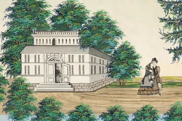Rumssvit från gården Frejds, Tomtnäs 1:4, Ockelbo socken, målad av Eric "Dal-Erker" Ericsson, sannolikt 1850-tal.
