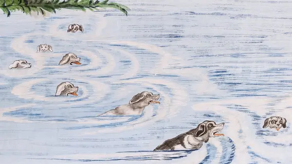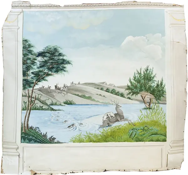 Målningarna hade skurits ned av tidigare ägare i samband med ett fönsterbyte. De hade förvarats i väntan på att rummet skulle återställas. Ny ägare valde att återställa rumsinteriören med hjälp av konservator. Fastigheten såldes och nya fastighetsägaren önskade att ta bort dem, skänkte dem därmed till museet 2017.