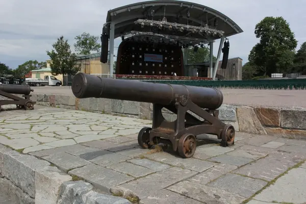 Det är oklart när kanonerna placerades på Sollidenscenen. Mycket tyder på att de funnits nära Sollidenscenen åtminstone sedan 1920-talet, om inte annat som en scenografisk ram till Svenska flottans musikkår. Dessa konserterade dagligen, mellan 1892 och 1954, på Skansen under perioden april-september.