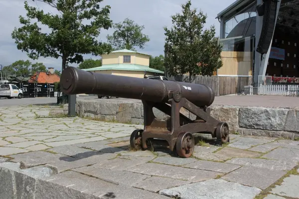 Det är oklart när kanonerna placerades på Sollidenscenen. Mycket tyder på att de funnits nära Sollidenscenen åtminstone sedan 1920-talet, om inte annat som en scenografisk ram till Svenska flottans musikkår. Dessa konserterade dagligen, mellan 1892 och 1954, på Skansen under perioden april-september.