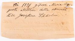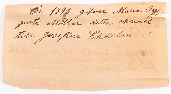 År 1895 gifver Maria Augusta Möller detta skrinet till Josefine Ekholm"