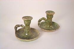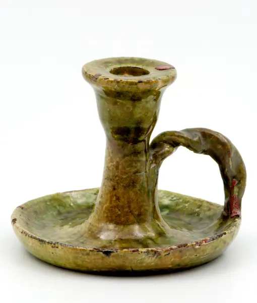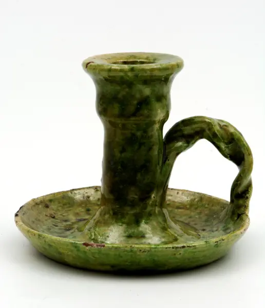 - Kontorsljusstake, tillverkad av keramikern August Cederholm på 1930-talet. Verkstad på Träslövsvägen 13-14. Framställde och blandade själv sina glasyrer. Gåva 1970 vid museets årsmöte av kapten och fru Nils Strömbom, Varberg. Kapten Nils Strömbom (1898-1983) tjänstgjorde som militär både i Halmstad och i Stockholm. Han var expert på bonadsmåleri, främst det sydsvenska, och utnämndes av Lunds universitet till fil.dr honoris causa och var ledamot av Kungl. Gustaf-Adolfsakademin samt i Vetenskapssocieteten i Lund. Han deltog i uppbyggnaden av Varbergs och Halmstads museer. Bålastugan inköptes av hans morfar Alfred Bexell 1876 från Harplinge. Dess interiör står oförändrat sedan 1700-talets slut. Han var gift med Gulli Strömbom (1910-2002), dotter till Birger Svensson, cykelfabriken Monarks grundare.