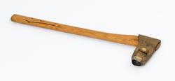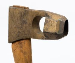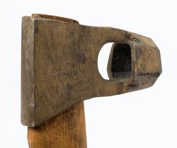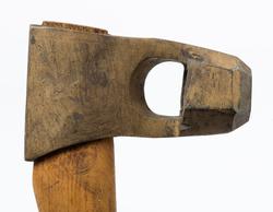 Denne merkeøksa er ei av flere som ble funnet i Norsk skogmuseums skogbruksmagasin, i en pappeske med uregistrert materiale. Det vite seg imidlertid at hver enkelt gjenstand hadde en merkelapp der det blant annet sto «GF: 18/11-91». Vi kjenner oss sikre på at «GF» betyrd Glomma fellesfløtingsforening og at datoen er aksesjonsdatoen. Vi vet ikke hvilket av Glomma fellesfløtingsforenings anlegg denne merkeøksa kan ha hatt tilknytning til.