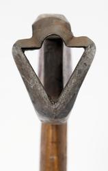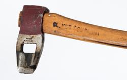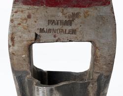 Denne merkeøksa er ei av flere som ble funnet i Norsk skogmuseums skogbruksmagasin, i en pappeske med uregistrert materiale. Det vite seg imidlertid at hver enkelt gjenstand hadde en merkelapp der det blant annet sto «GF: 18/11-91». Vi kjenner oss sikre på at «GF» betyrd Glomma fellesfløtingsforening og at datoen er aksesjonsdatoen. Vi vet ikke hvilket av Glomma fellesfløtingsforenings anlegg denne merkeøksa kan ha hatt tilknytning til.