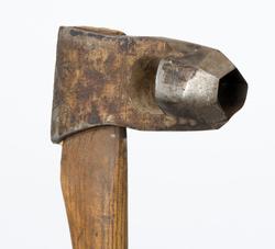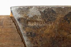 Denne merkeøksa er ei av flere som ble funnet i Norsk skogmuseums skogbruksmagasin, i en pappeske med uregistrert materiale. Det vite seg imidlertid at hver enkelt gjenstand hadde en merkelapp der det blant annet sto «GF: 18/11-91». Vi kjenner oss sikre på at «GF» betyrd Glomma fellesfløtingsforening og at datoen er aksesjonsdatoen. Vi vet ikke hvilket av Glomma fellesfløtingsforenings anlegg denne merkeøksa kan ha hatt tilknytning til.