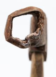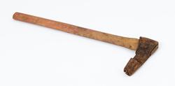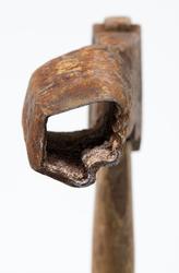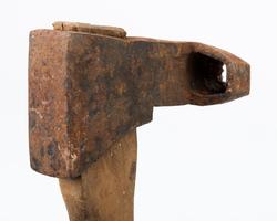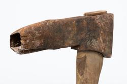 Denne merkeøksa er ei av flere som ble funnet i Norsk skogmuseums skogbruksmagasin, i en pappeske med uregistrert materiale. Det vite seg imidlertid at hver enkelt gjenstand hadde en merkelapp der det blant annet sto «GF: 18/11-91». Vi kjenner oss sikre på at «GF» betyrd Glomma fellesfløtingsforening og at datoen er aksesjonsdatoen. Vi vet ikke hvilket av Glomma fellesfløtingsforenings anlegg denne merkeøksa kan ha hatt tilknytning til.