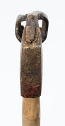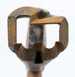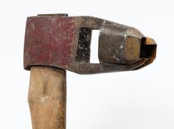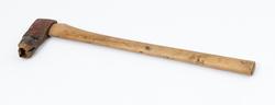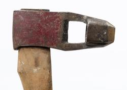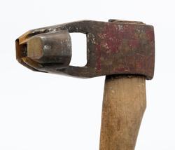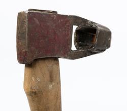 Denne merkeøksa er ei av flere som ble funnet i Norsk skogmuseums skogbruksmagasin, i en pappeske med uregistrert materiale. Det vite seg imidlertid at hver enkelt gjenstand hadde en merkelapp der det blant annet sto «GF: 18/11-91». Vi kjenner oss sikre på at «GF» betyrd Glomma fellesfløtingsforening og at datoen er aksesjonsdatoen. Vi vet ikke hvilket av Glomma fellesfløtingsforenings anlegg denne merkeøksa kan ha hatt tilknytning til.