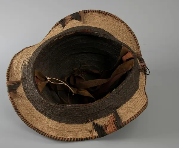 - Hjemført av skipsfører Lauritz Larsen, Arendal i 1890 årene. Hatten er en gave fra en høvding i egnen omkring Tsadsjøen.