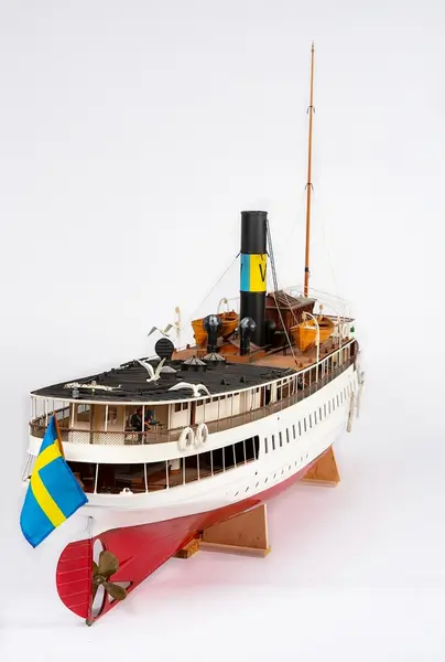- Other informationRederi: Waxholms Nya Ångfartygs AB (C.H.Backert) || Varv: Södra Varvet, William Lindbergs Mekaniska Verkstad & Varfs AB || Ort: Sve Stockholm || År: 1900 || Konstruktör: Hernberg, Ernst || Bredd över allt 8,02 meter || Längd över allt 46,20 meter || Fartygsfakta: 208/92 ton || Namnsignal: JLPV || Reg. nr: 3724 (SE. 1903-04).