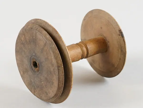- Frå verkstad. Truleg opphaveleg frå verkstaden til rokkedreiar Anders Olson Almenning (Kandalen, Gloppen), bestefar til gjevar.
