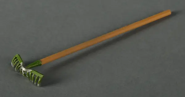 De sex trädgårdsredskapen med långa handtag hör till trädgården utanför dockskåp NM.0331721+. Enligt givaren ska de stå lutade mot husväggen på sidan som vetter mot trädgården. Dockskåpet är tillverkat av givarens far i början av 1970-talet och avbildar familjens hem som det såg ut med inredning och allt, när de mellan åren 1960-1978 bodde i en villa i Nockeby. Huset byggdes på 1930-talet och finns fortfarande kvar. Det har källare, vind, två våningsplan och en liten trädgård. Pappan, som på den tiden var vice VD för Johnsonkoncernen, ägnade all sin fritid åt samvaro med sin förståndshandikappade son. Sonen älskade att leka med husmodellen som pappan byggt och behöll den livet ut som ett kärt minne. För honom hade hemmiljön stor betydelse och han tyckte om att varje sak fanns på rätt plats. Dockskåpet kom att spela en viktig roll i kommunikationen mellan dem.