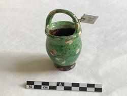 I Leirkrukka var oppbevart en del perler til perleband som var gått sund. Det sto sist i noen smårom i reolen i spiskammeret på Utland. Den forefantes på Utland allerede først i 1930-tallet.