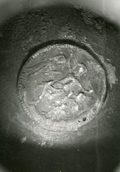 Datering, senmedeltid, tillverkad under 1400-talet, eller möjligen 1300-talet, tillverkad före år 1480 på grund av tillverkningstekniska orsaker. Kan vara tillverkad i Sverige som hade kannegjutare i flera av de medeltida städerna, bl. a. Stockholm och Kalmar.