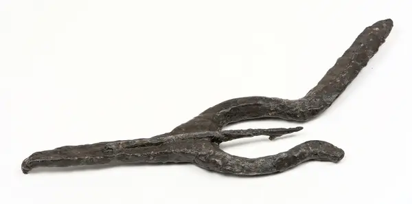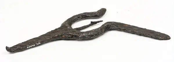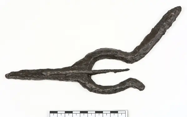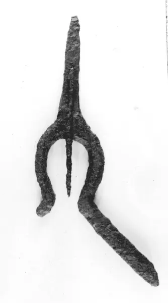 Arkeologiskt föremål. Fynd gjort i samband med arkeologisk undersökning 1936 av dåvarande museichef Albert Sandklef. Funnen på platsen där den treskeppiga medeltida tegelkyrkan låg och där Lindhovs kungsgård är belägen idag.
