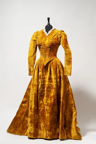 Denne drakten ble antakelig brukt av Wenche Foss i rollen som Maria Stuart i Nationaltheatrets oppsetning av Bjørnstjerne Bjørnsons stykke "Maria Stuart i Skottland" i 1957. Lita Prahl (1905–1978) sto for kostymene i denne oppsetningen.