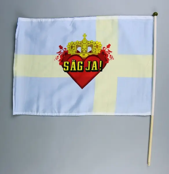 Flaggan delades av Aftonbladet 18 juni 2010 i samband med firandet av Kronprinsessparets bröllop.