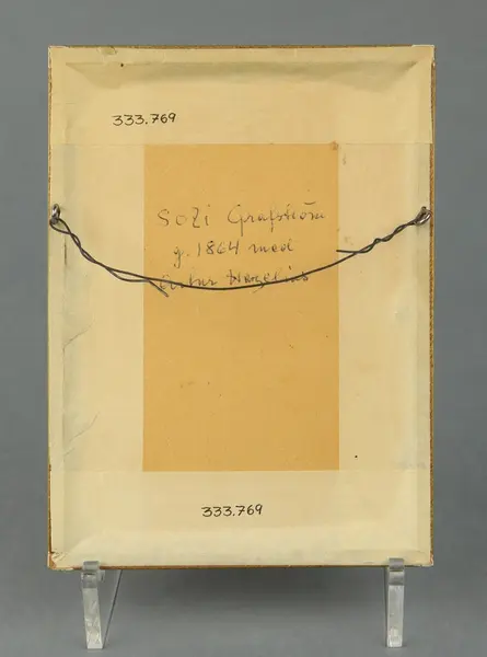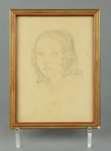Teckningen föreställer Sofi Hazelius, född Grafström. Sofi Grafström gifte sig 1864 med Artur Hazelius.