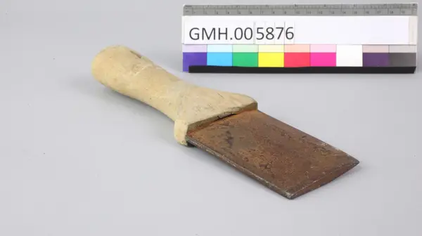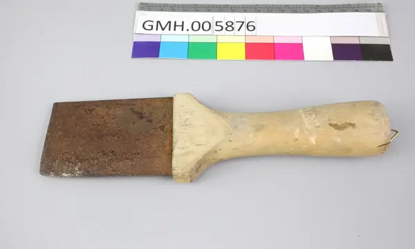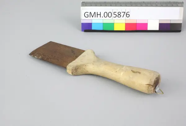 Flekkekniven består av et solid trehåndtak som har innskjært et kryss ved overgang til klingen. Krysset skal har vært kjennetegnet for Rolf Nissen som eide kniven tidligere. Klingen er rektangulært og er skarpt kun på en side. Giveren har festet et lite opphengskrok i enden av håndtaket, noe som vitner om at han hadde den hengen... Flekkekniven består av et solid trehåndtak som har innskjært et kryss ved overgang til klingen. Krysset skal har vært kjennetegnet for Rolf Nissen som eide kniven tidligere. Klingen er rektangulært og er skarpt kun på en side. Giveren har festet et lite opphengskrok i enden av håndtaket, noe som vitner om at han hadde den hengende som pynt med høy affeksjonsverdi.
