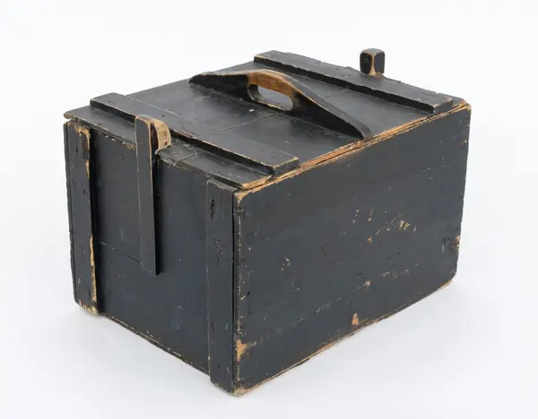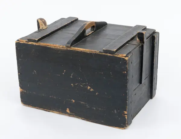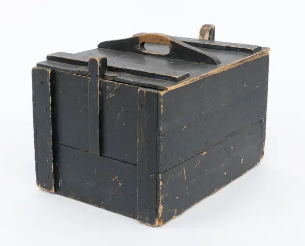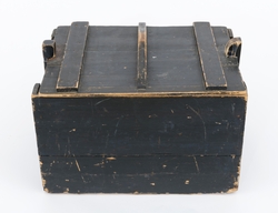 Denne proviantkassa var blant de gjenstandene som kom i Norsk Skogbruksmuseums eie ved overtakelsen av Sørlistøa i 1984-85. Den ble funnet på Sørlistøa uten nummersignatur i forbindelse med samlingsrevisjonsarbeidet sommeren 2020.