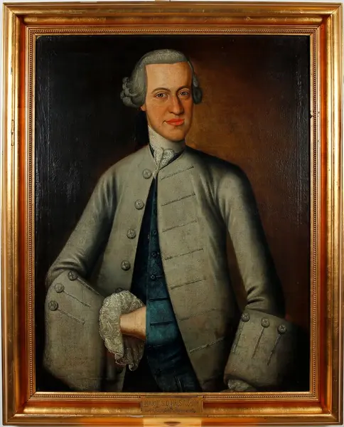 about Oljemaleri innrammet i forgylt profilert ramme. Portrett av Major S.B. Hals 1735-1779.