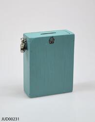 "Denna kartong innehåller 16 st olika KKL-bössor, en del sällsynta. De utgör grunden till samling om KKL-bössor. Kasta dom inte det är intressanta saker från olika tider inom KKL:s 75 åriga verksamhet".