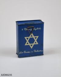 "Denna kartong innehåller 16 st olika KKL-bössor, en del sällsynta. De utgör grunden till samling om KKL-bössor. Kasta dom inte det är intressanta saker från olika tider inom KKL:s 75 åriga verksamhet".