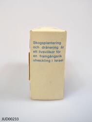 "Denna kartong innehåller 16 st olika KKL-bössor, en del sällsynta. De utgör grunden till samling om KKL-bössor. Kasta dom inte det är intressanta saker från olika tider inom KKL:s 75 åriga verksamhet".
