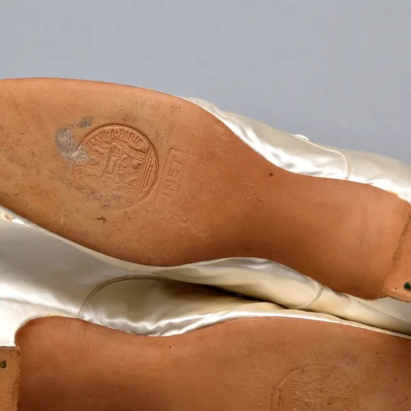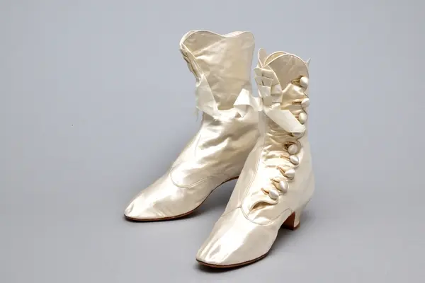 - Skor tillverkade i Paris. Möjligen komponerade av Augusta Lundins sömnadsateljé. Tillhör en hel brudutstyrsel från 1882 buren av Lotty Bruzelius f. Kempe. Resten av bruddräkten komponerades och producerades hos Augusta Lundins sömnadsateljé i Stockholm.