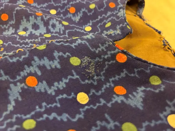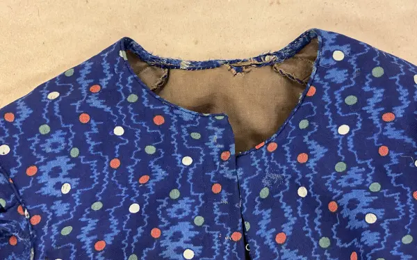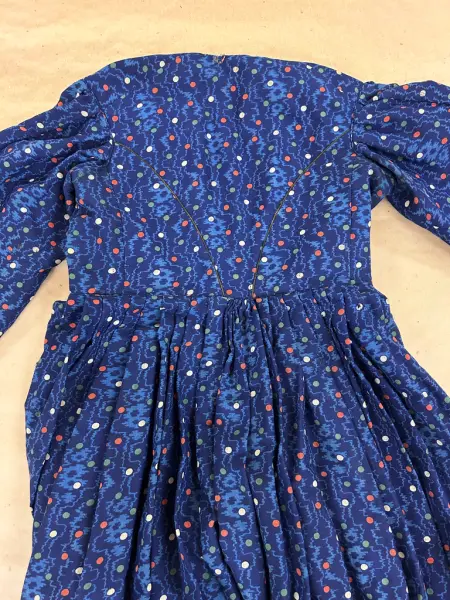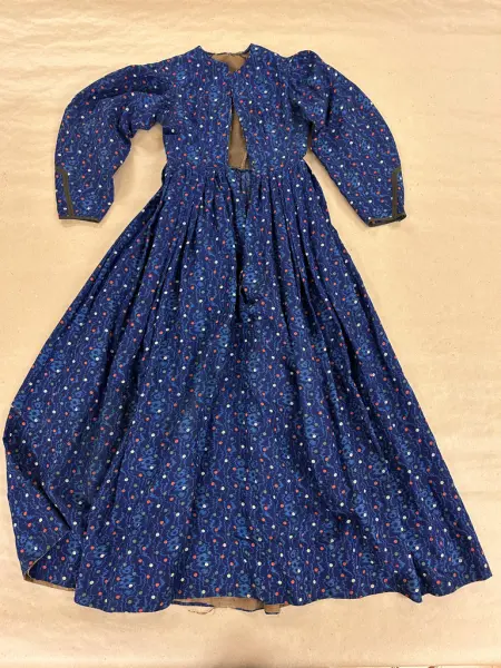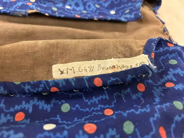 Anm: Maria Olsdotter och Karin Olsdotter, döttrar till kyrkvärden Ole Jansson, hade båda lika klänningar, deras flickklänningar, endast denna kvar, systerns gjordes om till täcke.