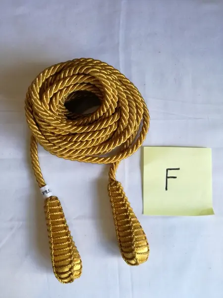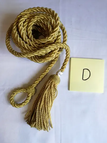 D: Gullfarget snor med dusk og løkke i hver sin ende.
