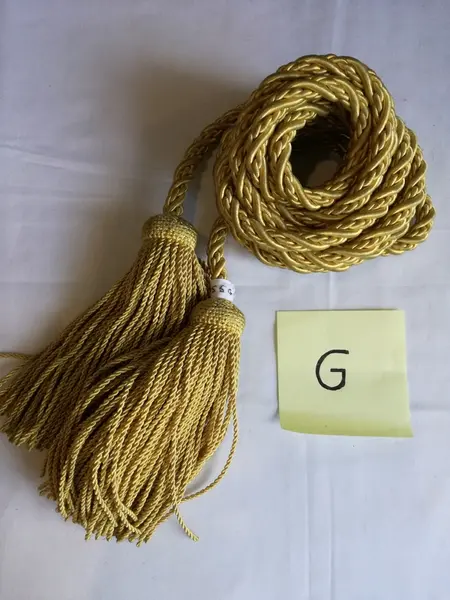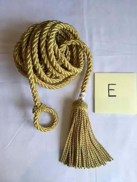 E: Gullfarget snor med dusk og løkke i hver sin ende.