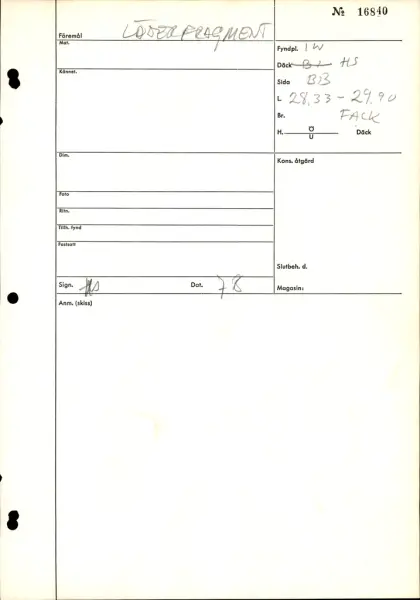 I Vasa, Hålskepp, balk 16-17, babord, Längd från för: 2833-2990- FyndplatsI Vasa, Hålskepp, balk 16-17, babord