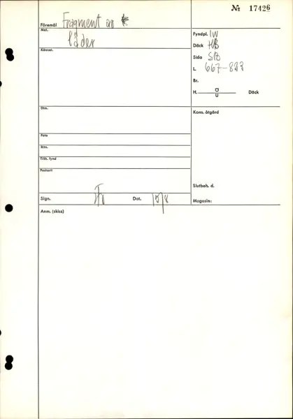 I Vasa, Hålskepp, balk 3-4, styrbord, Längd från för: 667-823- FyndplatsI Vasa, Hålskepp, balk 03-04, styrbord