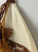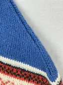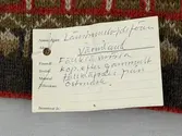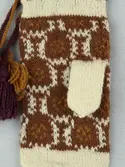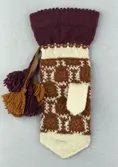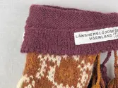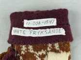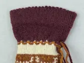 En stickad tumvante, med ett uddvarv vid fållvikning på krage och mönsterstickad vante i slätstickning, av 2-trådigt ullgarn. Vid handleden är 3 stycken finger-påtade snoddar inträ...