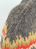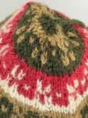 En stickad mössa, i mönsterstickad slätstickning, av 2-trådigt ullgarn. Mössan är rundstickad och har en fåll med 1-1 resår (1 rät och 1 avig maska) i nederkant, som är fastsydd me...