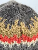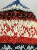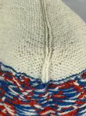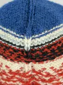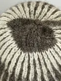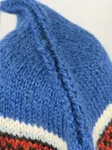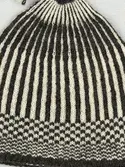 En stickad mössa, i mönsterstickad slätstickning, av 2-trådigt ullgarn. Mössan är rundstickad, men har en avig maska på två sidor, som dekor och ska likna en söm. Nederkanten har e...