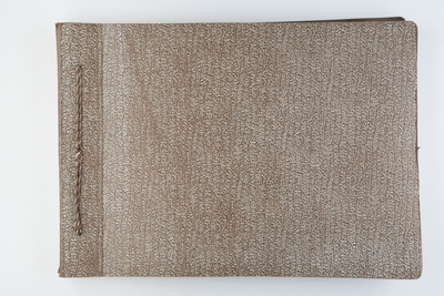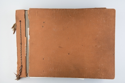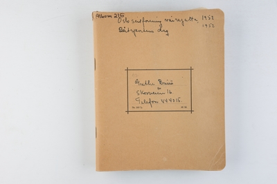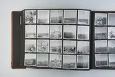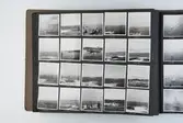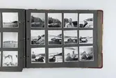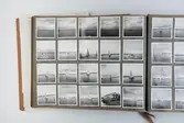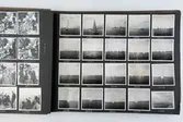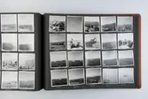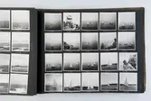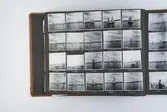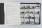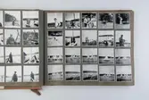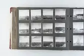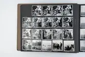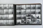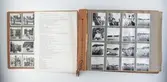 Fotoalbum i plast med svarthvite fotografier og negativer.