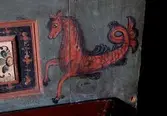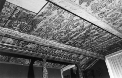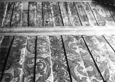 Rosemalt tak av Olav Hansson med framstilling av blant annet de fire årstider.