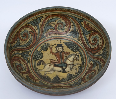 Malt av Olav (Ola) Hansson (1760-1843) fra Hovin, den mest særpregede rosemaleren i Telemark. Olav Hansson gikk mellom 1780-1800 bort fra en bypåvirket stil til en mer selvstendig ...