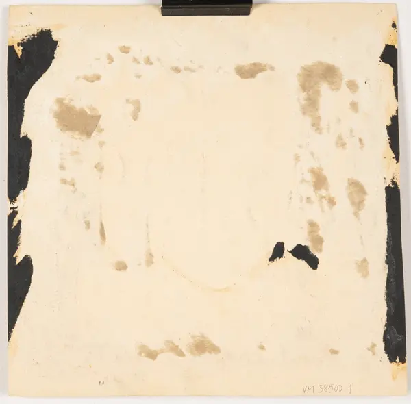 about Konstnärens signatur skriven på papper är limmad på illustrationen.