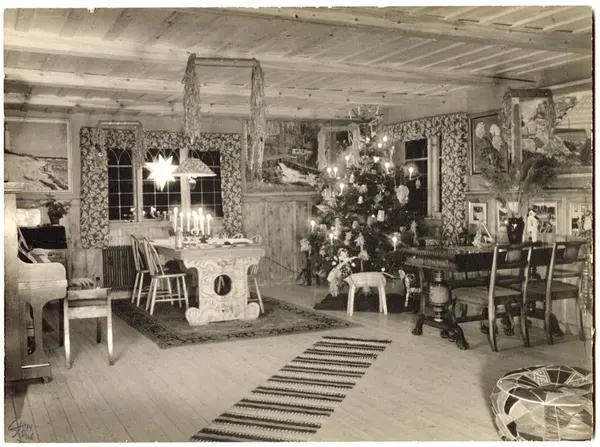 En kvinna och en pojke står vända mot betraktaren. Kvinnan håller sin hand på pojkens huvud och ser mycket uppsluppen ut, pojken har en sur min och snur rinner ur näsan. Bakom dem en soffa i i Karl johan-stil och fotografier i ovala ramar. Utifrån kläder och inredning ser bilden ut att illustera en scen tidigt 1900-tal.