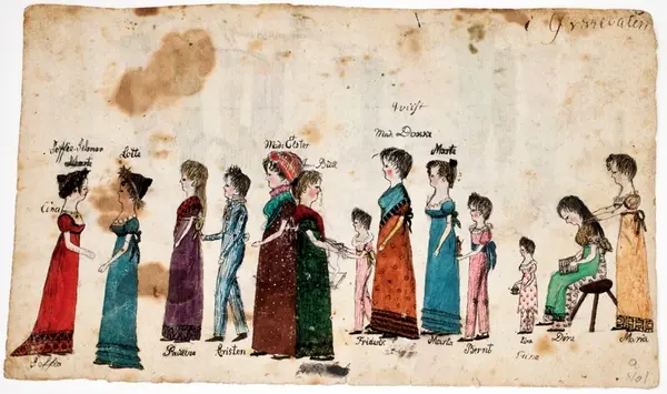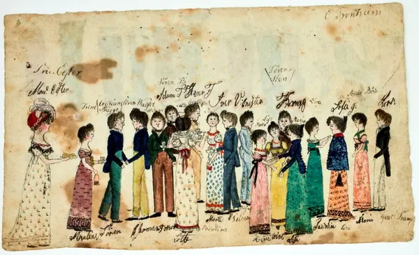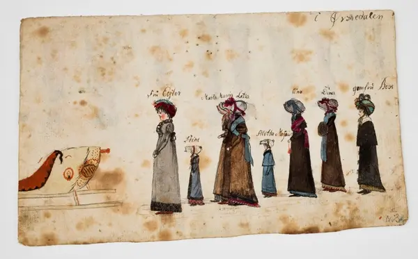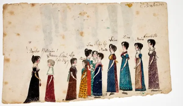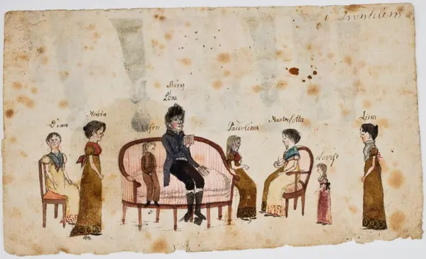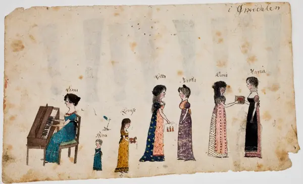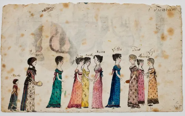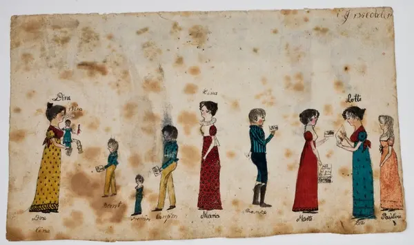 - Christiane Charlotte Elster (1800-1893) var datter av Christine Fredrikke Collin og Christen Elster (1763-1833). Christen Elster var fra 1815 amtmann i Nordre Trondhjems amt, bosatt på Inderøy. Der bodde Christiane inntil hun i 1822 giftet seg i Verdal med presten Christian Bernstorff Bødtker. Tegningene viser personer i selskapsliv m.m. i Trondheim og Orkdal. Christiane har satt navn ved personene slik at de i stor grad kan identifiseres. Selv kaller hun seg Lotte.