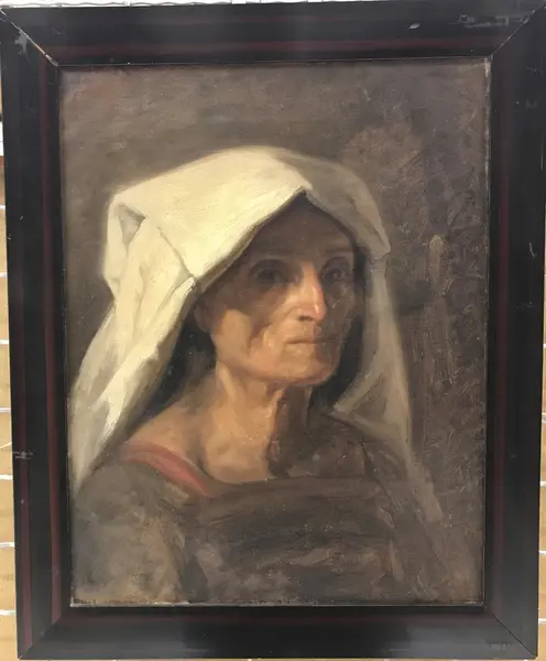 Anmärkning: På baksidan av spännramen: Helge Kjellin disputerar 1917 på Uno Troili. Det är en glädje för oss, Helge Kjellins döttrar, att få skänka denna tavla till Värmlands Museum 7 juni 1998. Alva Kjellin, Marja Schönmeyr.
