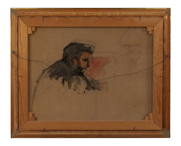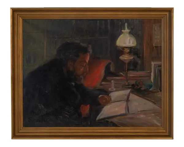 - Mea Lindeberg gjorde ytterligare målningar av fadern. En av dessa syns på ett fotografi, återgivet i Pehr Thermaenius bok om Sigrid Thermaenius, taget i föräldrahemmet.