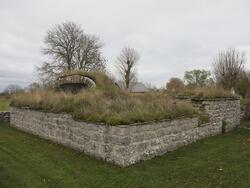 - Anläggningen har varit församlingens medeltida prästgård. Efter det att Lau blivit annex till När fick prästgården förfalla men iståndsattes senare som bostad åt klockaren. I mitten av 1800-talet var den åter öde och så förfallen att inget annat syntes av boningshuset än en ruinkulle. Ruinen grävdes ut och konserverades 1931.